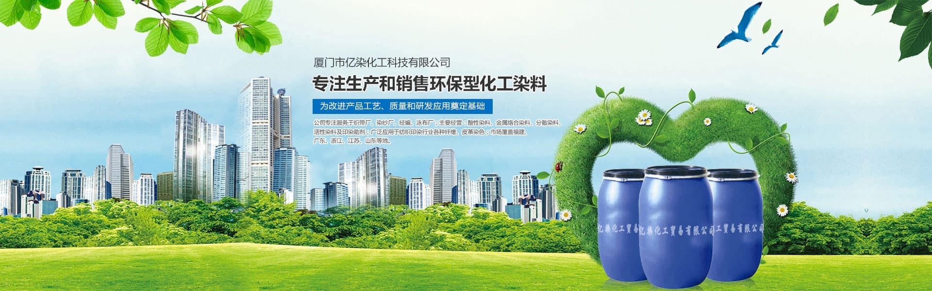 廈門市億染化工科技有限公司是一家集研發、生產、銷售一體的綜合型企業。公司主要經營:酸性染料、金屬絡合染料、高牢度分散染料及印染助劑。公司信守“以誠信贏合作、以質量贏市場、以創新贏發展、以服務贏生存”的企業精神服務于廣大客戶,多年以來建立了良好的市場口碑,市場遍布福建、廣東、浙江、江蘇、山東及東南亞國家,與多家知名企業建立了長期合作伙伴關系!